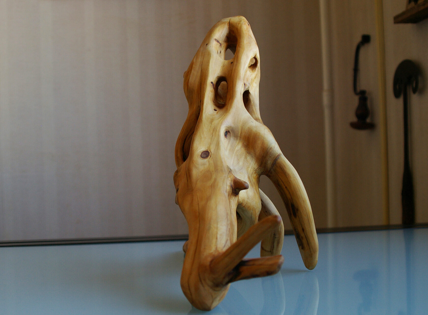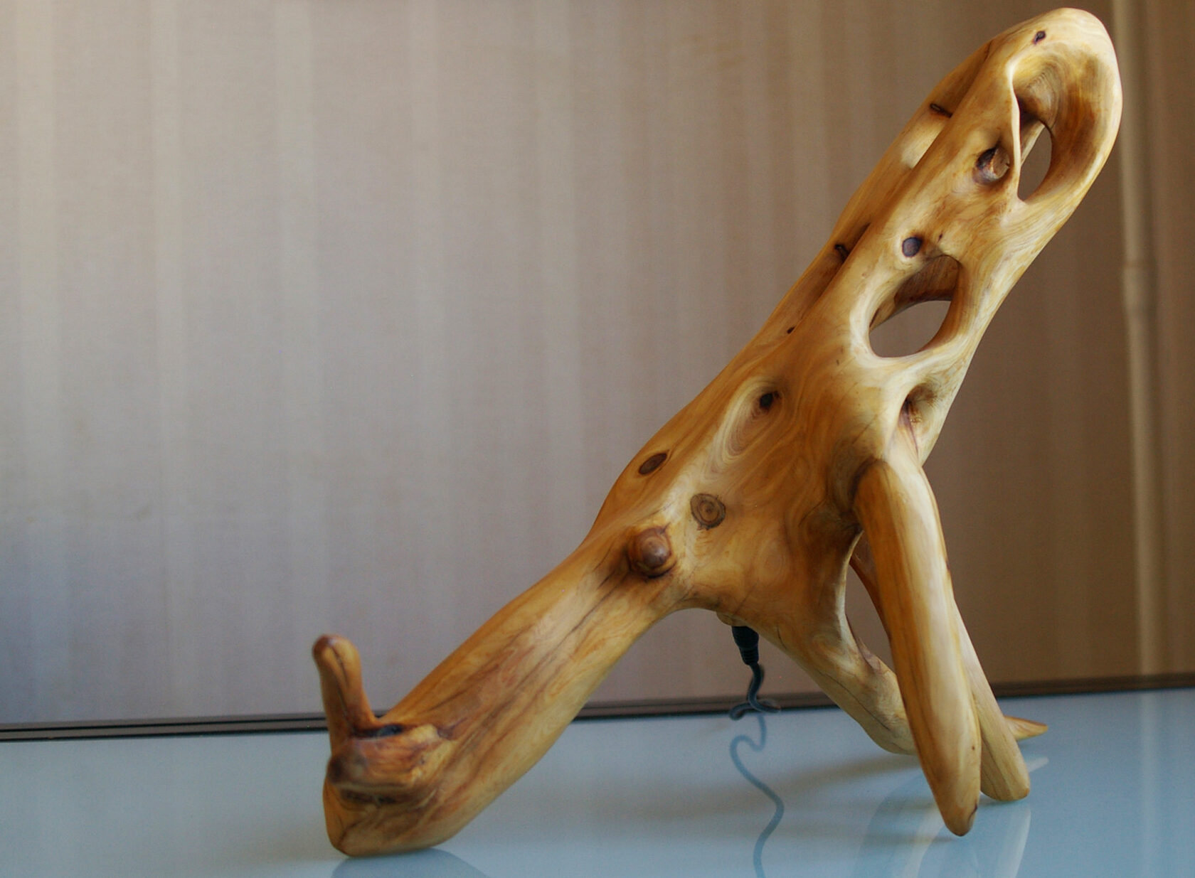 Каждый видит в этой форме что-то свое и это замечательно, для меня вдохновением послужило прошлое, далекое далекое прошлое. Этот светильник словно доисторический артефакт. Для меня он похож на кости вымершего животного, и дополняет мою доисторическую серию, созданную в 2025 году. Но я не настаиваю на этой ассоциации, на самом деле он прекрасен просто сам по себе. Чистая, абстрактная форма, отшлифованная до гладкости, подчеркивающая естественную красоты благородной древесины.